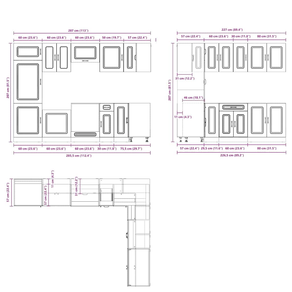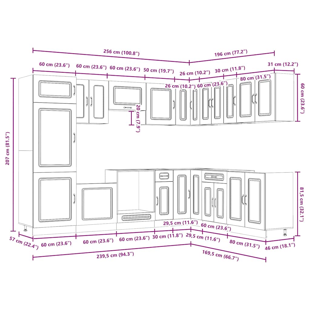 - 1 x Küchenschrank: 60 x 57 x 207 cm (B x T x H)