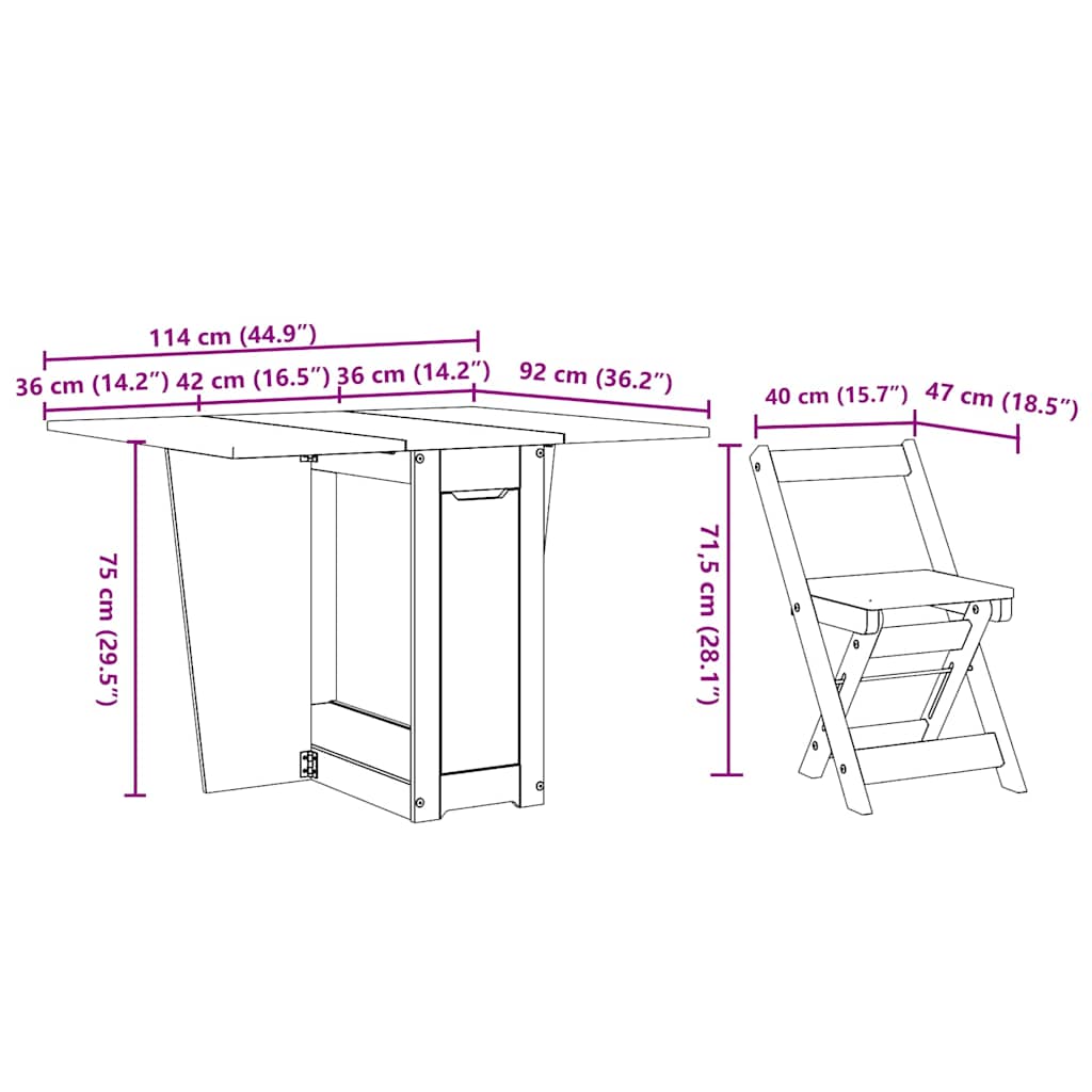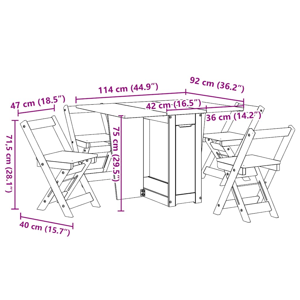 Schaffe mit diesem Set aus Klapptisch und Klappstühlen einen gemütlichen und einladenden Ort, an dem du deinen Tag beginnen oder mit der Familie eine großartige Mahlzeit genießen kannst. Haltbar und langlebig: Diese Essgruppe ist aus strapazierfähigem Kiefernholz und Holzwerkstoffen gefertigt, was Stabilität und Robustheit und eine lange Nutzungsdauer gewährleistet.Ausziehbar und klappbar: Der Butterfly-Tisch verfügt über eine Tischplatte, die bei Bedarf ausgezogen und bei Nichtgebrauch einfach zusammengeklappt werden kann. Die Stühle sind außerdem klappbar, was die Lagerung und den Transport dieses Esstisch-Sets erleichtert.Kompakte, platzsparende Aufbewahrung: Der Klapptisch verfügt über eine Aufbewahrungsfunktion, wodurch du die Klappstühle bei Nichtgebrauch platzsparend im Tisch verstauen kannst.Vielseitig einsetzbar: Mit seinem modernen, klappbaren Design kann dieser Tisch sowohl als Esstisch als auch als praktischer Arbeitstisch, PC-Tisch oder als charmanter Frühstückstisch verwendet werden. Seine Vielseitigkeit macht ihn zu einer hervorragenden Ergänzung für jeden Raum.Pflegeleicht: Dank ihrer glatten Oberfläche lässt sich die Essgruppe mit einem feuchten Tuch leicht reinigen und erfordert wenig Pflege.