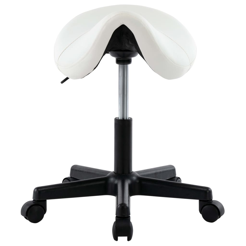 Der stilvolle Arbeitshocker bietet eine perfekte Balance zwischen Stil und Funktionalität. Dieser Arbeitsstuhl ist mit leicht zu reinigendem Kunstleder bezogen und bietet höchsten Sitzkomfort. Seine Sattelform ermutigt Sie, eine gesündere Sitzposition einzunehmen, die Ihrem Körper zugute kommt. Sie können sich auch flexibel bewegen. Der Hocker ist höhenverstellbar und erfüllt Ihre unterschiedlichen Bedürfnisse während der Arbeit. Zusätzlich bieten die fünf 360-Grad-Rollen maximale Mobilität.