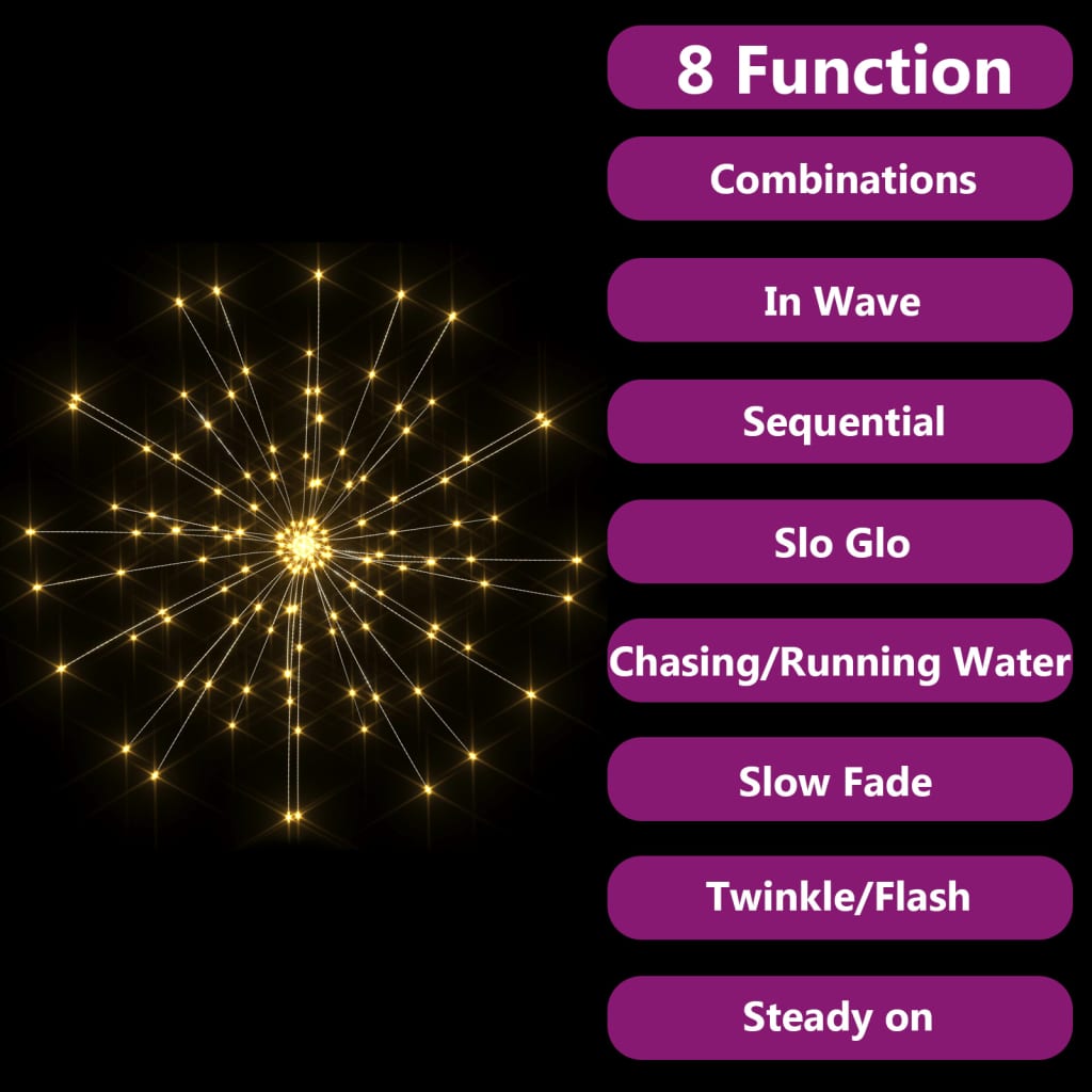 Dieses Feuerwerkslicht stellt eine perfekte Dekoration für Weihnachten, Feste, Geburtstagsfeiern, Hochzeiten, usw. dar. Mit energiesparenden LEDs ausgestattet, bietet dieses Meteor-Licht eine helle und leistungsstarke Beleuchtung in Innen- und Außenbereichen. Es verfügt über 8 verschiedene Beleuchtungsmodi: Kombination, wellenartig, sequenziell, langsam leuchtend, blinkend, langsam ausklingend, glitzernd und Dauerlicht. Mit der mitgelieferten Fernbedienung lässt sich das Feuerwerkslicht ganz einfach bedienen. Dank der flexiblen Kupferdrähte kannst du es leicht in jede Form biegen. Hinweis: Der mitgelieferte USB ist nicht wasserdicht, daher muss dieser Teil vor Wasser geschützt werden, aber dank des Verlängerungskabels kann die Weihnachtsbeleuchtung im Freien verwendet werden, da Kabel und Produkt wasserdicht sind. Das Produkt verfügt über einen USB-Anschluss, aber die zertifizierte 5-V-USB-Stromquelle ist nicht im Lieferumfang enthalten.