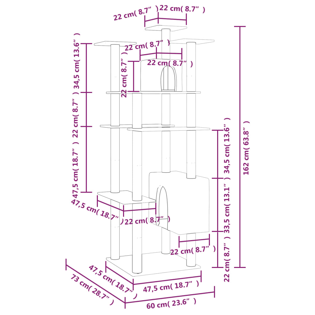 Mit diesem Kratzbaum genießen Ihre pelzigen Freunde einen Hauch Luxus! Ihre Katzen werde es genießen, daran Ihre Krallen zu schärfen, zu klettern, sich zu verstecken und sich auszuruhen. Alles-in-einem-Katzenturm: Der mehrstufige Katzenturm bietet deiner Katze einen unterhaltsamen und kompakten Platz zum Spielen, Bewegen und Schlafen. Er besteht aus 2 Häusern und Plattformen.Bequemer Plüsch: Dank des hautfreundlichen und flauschigen Plüschbezugs genießen deine Katzenfreunde höchsten Komfort beim Spielen.Strapazierfähiges Sisalseil: Die Säulen dieses Kratzbaums sind mit natürlichen Sisalseilen umwickelt, sodass deine Katzen ihre Kratzinstinkte auf gesunde Weise befriedigen können. Hinweis:Jedes Produkt wird mit einer Montageanleitung in der Verpackung für eine einfache Montage geliefert.