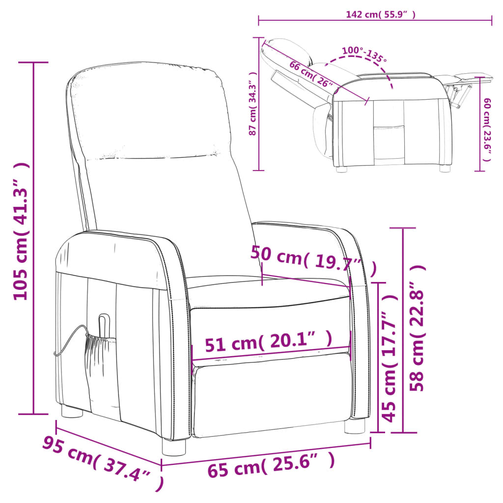 Lehne dich zurück und entspanne dich in diesem äußerst bequemen Massagesessel! Manuelle Liegefunktion: Der Sessel kann manuell in 3 Positionen verstellt werden, so dass die Rückenlehne und der Fußteil je nach Bedarf eingestellt werden können.Vibrationsfunktion: Mit den 6 Massagepunkten kann man eine gezielte Massage genießen. Außerdem ermöglicht die mitgelieferte Handsteuerung die Auswahl verschiedener Massageprogramme. Die Massagefunktion wird über den USB-Anschluss mit Strom betrieben, aber das zugelassene 5V-USB-Netzteil ist nicht im Lieferumfang enthalten.Bequemes Sitzerlebnis: Der dick gepolsterte Sitz, die Rückenlehne und die breiten, mit Kunstleder bezogenen Armlehnen sorgen für ein behagliches und angenehmes Sitzgefühl. Künstliches Leder ist ein äußerst langlebiges Material. Es ist schmutzabweisend und lässt sich mit einem feuchten Tuch einfach reinigen. Durch die glatte Oberfläche weist es die luxuriöse Schönheit von Echtleder auf.Solider und stabiler Rahmen: Der Rahmen aus Holz und Metall sorgt für eine solide Struktur und hohe Stabilität. Dieser TV-Sessel ist bequem und langlebig.