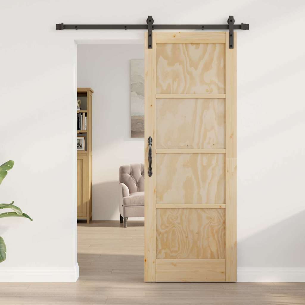 Die moderne Schiebetür aus Kiefernholz ist ein stilvolles Upgrade für jeden Raum und fügt sich nahtlos in unterschiedliche Raumkonfigurationen wie Flure oder Wohnzimmer ein. Ihre prägnante rechteckige Form hebt die klaren Linien hervor und bietet praktische Nutzung ohne den Stil zu schmälern. Stell dir den eleganten Übergang zwischen Räumen vor, den dieses Stück ermöglicht, und vereine modernen Minimalismus mit struktureller Schönheit. Maßgeschneidert für alle, die Funktionalität und Design schätzen, ist diese Tür sowohl funktional als auch ein visuelles Highlight in jedem modernen Zuhause. Materialien: Diese Schiebetür aus Kiefernholz strahlt natürliche Wärme und Langlebigkeit aus. Die Wahl des Hauptmaterials bringt ’ne organische Ästhetik, die jeden Raum aufwertet, während Sperrholz- und pulverbeschichtete Stahlkomponenten Stärke und Stabilität garantieren. Diese Materialien garantieren Widerstandsfähigkeit gegen tägliche Abnutzung. Enthaltene Komponenten: Die Schiebeelemente erlauben eine mühelose Bewegung und sorgen für einen nahtlosen Übergang zwischen den Räumen. Der durchdachte Mechanismus sorgt dafür, dass alles leise und geschmeidig abläuft, was das Wohlfühlambiente in deinem Zuhause verstärkt. Mit jedem Gleiten zeigt die Tür eine beeindruckende Kombination aus Handwerkskunst und Technologie, die sowohl schön als auch stabil ist. Eigenschaften / Funktion / Design: Die moderne Designphilosophie der Tür setzt auf Einfachheit und Funktionalität und zeigt klare Linien ohne große Verzierungen. Ihre leise Gleifunktion spart Platz und bringt eine ästhetische Note, die gleichzeitig dezent und ansprechend ist. Diese Merkmale vereinen sich in einem Stück, das sowohl Präsenz als auch Praktikabilität bietet. Empfohlene Anwendungen: Perfekt zum Verbinden oder Trennen verschiedener Wohnbereiche wie Flure und Lounges, passt diese Tür nahtlos in jedes Zimmer. Mit ihrem flexiblen Design bietet sie eine moderne Lösung, um das Aussehen und die Dynamik deiner Räume zu verbessern. Pflege & Wartung: Die Pflege dieser eleganten Schiebetür ist ein Kinderspiel. Wische sie mit einem trockenen Tuch ab, um den natürlichen Glanz des Holzes zu erhalten und Staub zu entfernen. Mit diesen einfachen Pflegepraktiken behält das Stück über die Zeit seine Anmut und Funktion, was es ideal für Hausbesitzer macht, die Wert auf beides legen.