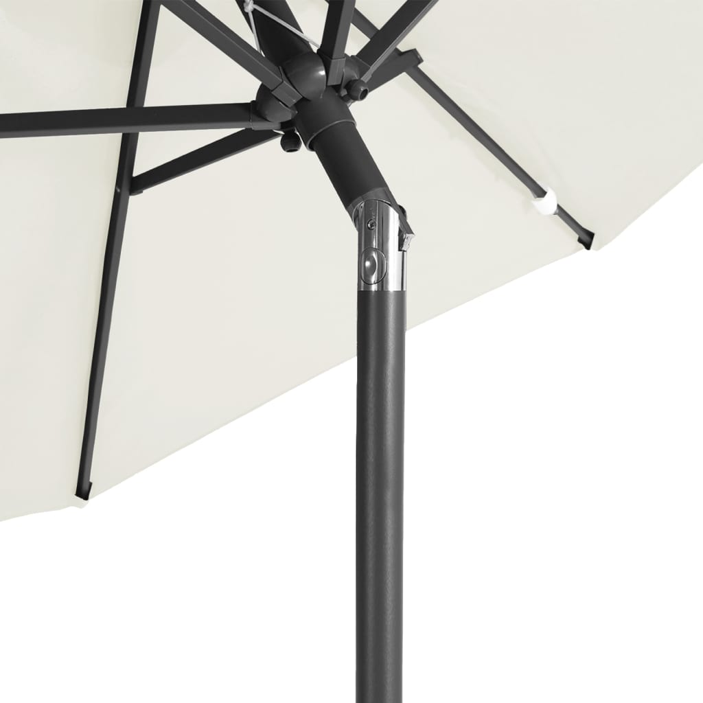 Dieser Sonnenschirm eignet sich perfekt, um Schatten zu spenden und dich vor den schädlichen UV-Strahlen der Sonne zu schützen. Schutz vor Sonne und Regen: Dieser Sonnenschirm aus strapazierfähigem Polyester bietet Schutz vor Sonne und Regen und ist ein idealer Ort, um den Outdoor-Bereich zu genießen. Robuste Konstruktion: Dieser Gartenschirm wird von einer robusten Stange und Rippen getragen, sodass er auch an windigen Tagen an Ort und Stelle bleibt. Kurbel- und Kipp-Mechanismus: Dieser Outdoor-Sonnenschirm mit Kurbel lässt sich leicht öffnen und schließen. Mit dem Kippmechanismus per Knopfdruck kannst du den Balkonschirm kippen, um die Sonne abzuschirmen und es kühl und bequem zu haben. Gut zu wissen:Dieses Produkt ist kein Spielzeug! Achte darauf, dass Kinder weder den Balkonschirm noch den Bezug oder den Schirmständer zum Spielen oder Klettern benutzen. Offenes Feuer (z. B. Gartengrill oder Grill) unter oder direkt neben diesem Produkt vermeiden. Dieses Produkt ist nicht zu 100 % wasserdicht. Wir empfehlen daher, es mit einem Imprägnierspray zu behandeln, um eine bessere Wasserfestigkeit zu gewährleisten.